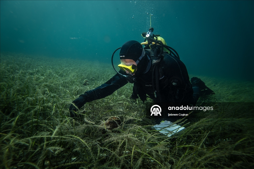 Bandırma Onyedi Eylül Üniversitesi Denizcilik Fakültesi Öğretim Üyesi Prof. Dr. Mustafa Sarı, Doç. Dr. Uğur Karadurmuş, Erdek Dalış Kulübü Eğitmeni Osman Benli ile AA ekibi, 3'üncü izleme sonucunda ağustosta 4 olarak belirlenen bebek pina sayısının 10'a çıktığını tespit etti.