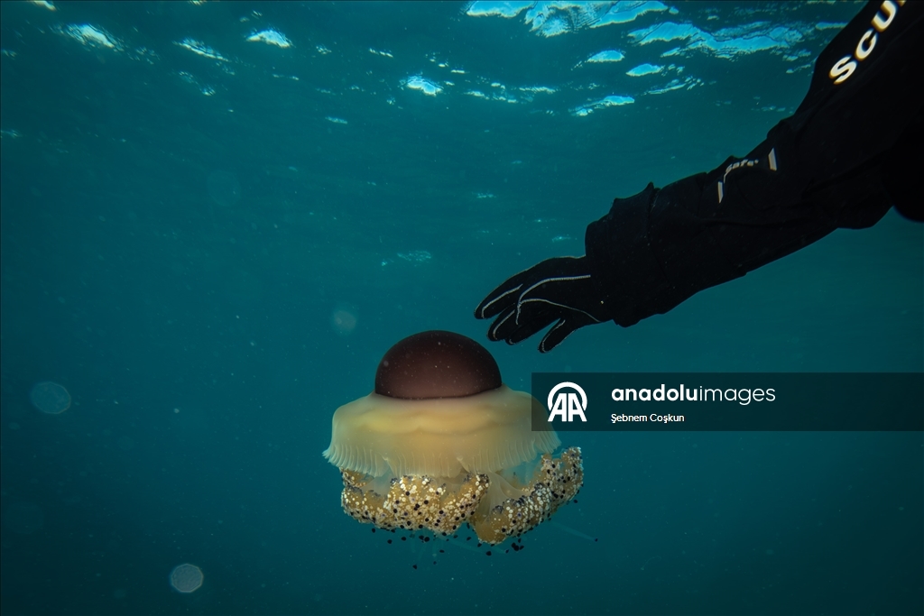 Projenin dalışı esnasında pinaların üzerinde Marmara Denizi'nde ilk kez 2022 yılında Erdek Körfezi'nde görüldüğü bildirilen, bilimsel adı "Cotylorhiza Tuberculata" olan "maviş denizanası" da görüntülendi. Oldukça renkli ve zehirsiz olan canlı, çoğu zaman şemsiyesi altında yavru balıkların dolaşmasıyla da biliniyor.