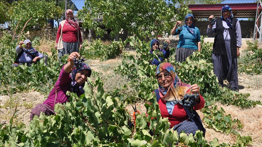 İlçede sezonun ilk üzüm hasadı, 1300 rakımlı Gündüzler Mahallesi'nde Mahmut Yel'e ait 20 dönümlük bahçede yapıldı.