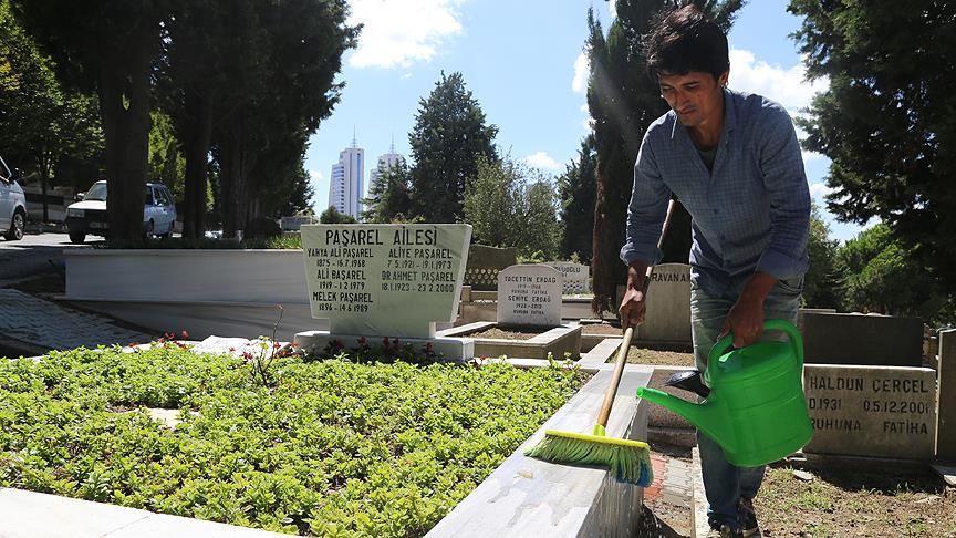 İstanbul'daki mezarlıklarda ellerinde çapa ve su bidonlarıyla dolaşan ve ücret karşılığında kabirleri temizleyen "mezar çapacıları", Kurban Bayramı arifesinde yoğun mesai yapıyor.