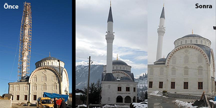 Rize'nin Güneysu ilçesinde, minarenin boyu camiye uzun gelince 25 metre kısaltıldı.***
