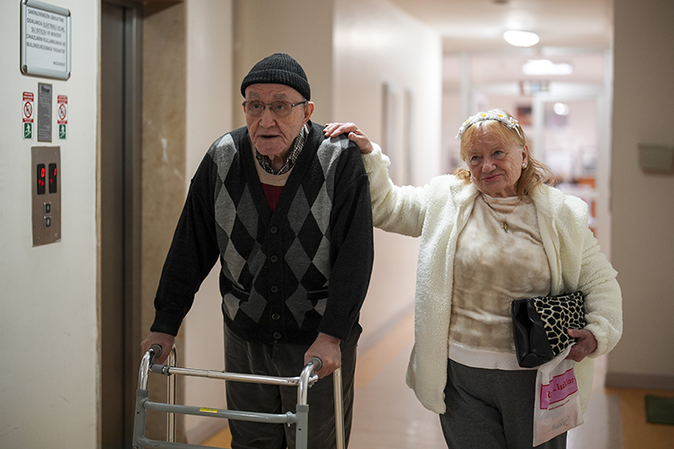 Yaşlılık dönemini güvenli ve huzurlu bir ortamda huzurevinde geçiren çift, günlük yaşamlarında çoğunlukla aynı odada sohbet ediyor, televizyon izliyor, anılarını paylaşıyor, geçmişte olduğu gibi birlikte dans ediyor, etkinliklere katılıyor.