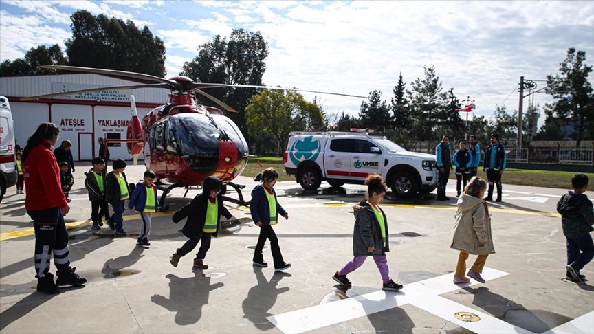 Anlık gelişmeler için AA Canlı Eğitimlerde öğrencilere acil sağlık hizmetleriyle ilgili bilgiler verilmesinin yanı sıra hasta ve yaralıların sevkinde kullanılan ambulans, helikopter ve UMKE araçları da tanıtılıyor.