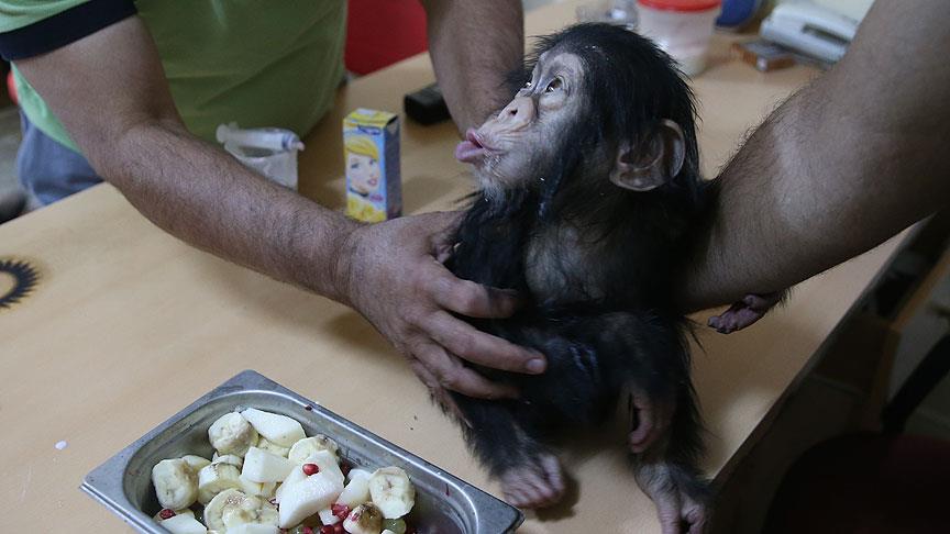 Gaziantep Hayvanat Bahçesi'nde dünyaya gelen ve "Can" adı verilen minik şempanze, 3 kişilik özel bir ekip tarafından günde 5 öğün, protein ve vitamin yönünden zengin gıdalarla besleniyor.