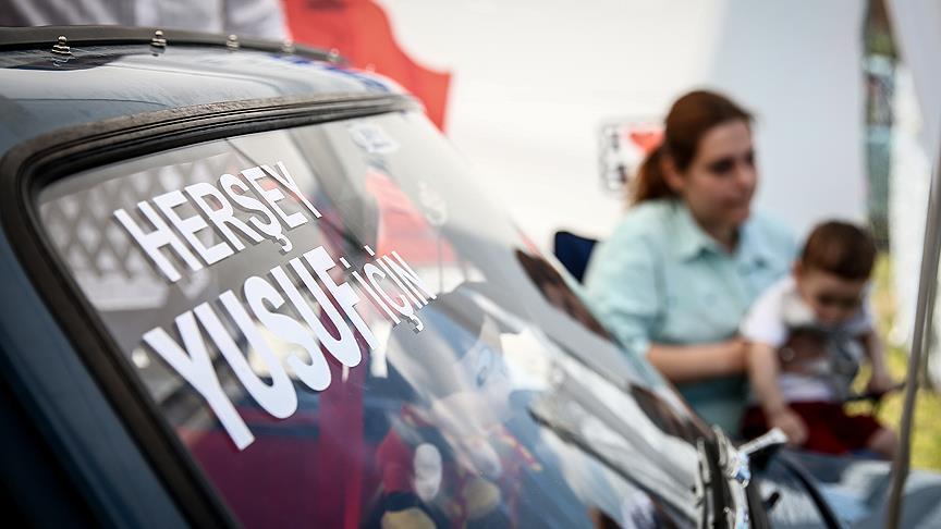 Otomobillerinin camlarına "Her şey Yusuf için" yazan modifiye tutkunları, daha sonra yardım kampanyasına maddi destek verdi.