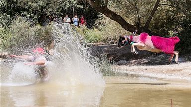 Denizli'nin Çal ilçesinde 8 asırdır sürdürülen "Sudan Koyun Geçirme Yarışması"na katılacak çobanlar, koyunların süsleme işlemlerini tamamlayarak temsili yörük göçünü canlandırdı.