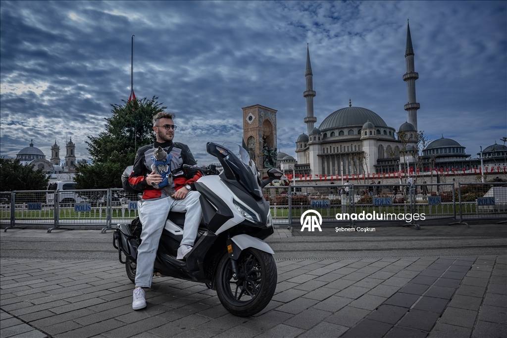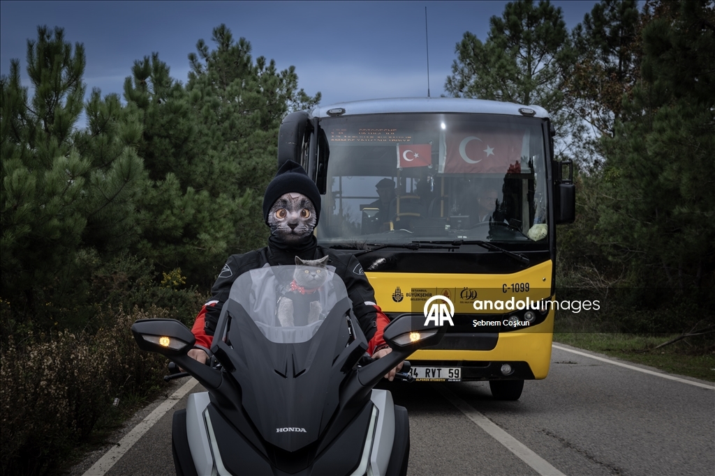 Motosikletli kedi "Gofret" İstanbul sokaklarında ilgi odağı oldu