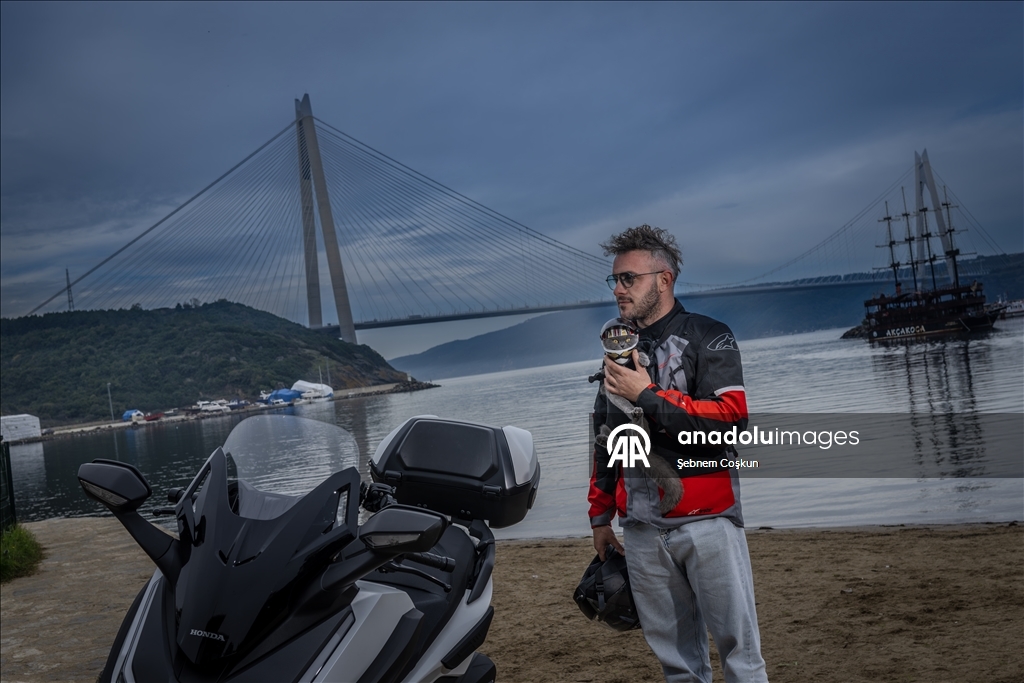 Topcu, İstanbul'da motosikletle gezerken durumu iyi olmayan hasta yavru kedi gördüklerini aktararak, "O, bizim için farklı bir olaydı. Yavru kedinin tedavisini yaptırdık. O da sağlığına kavuşmak üzere. İstanbul'a gelişimiz bir hayra da vesile oldu. Elimizden geldiğince sokaktaki kedilere de yardımcı olmaya çalışıyoruz." dedi.