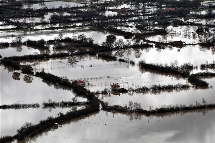 Su altında kalan tarım arazileri, yeni oluşmuş bir göl görüntüsü oluşturdu. Görüntüyü ilginç bulan vatandaşlar da alanda fotoğraf çektirdi.