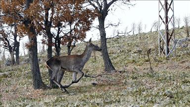 Öte yandan doğaya salınan kızıl geyikler fotokapanla ve dronla görüntülendi.