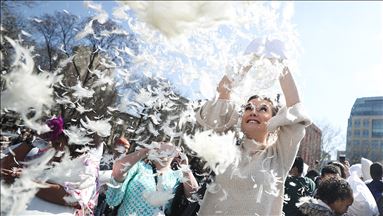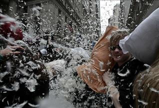 New York'ta Washington Meydanı'nda toplanan binlerce Amerikalı yastık savaşı yaptı.