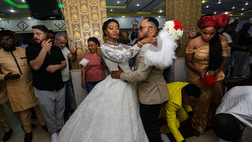 İstanbul'da ticaretle uğraşan gelin Divine ve damat Desmond, önce kilisede nikah kıydı, daha sonra da düğün salonunda yapılan törenle hayatlarını birleştirdi.