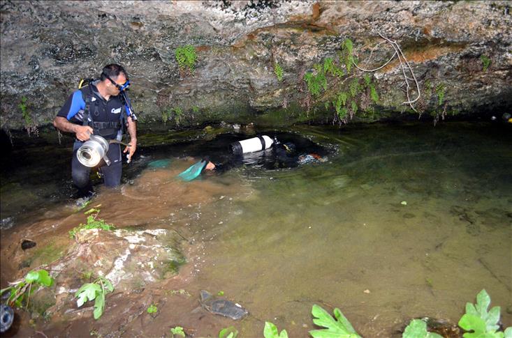 Akdeniz Üniversitesi Su Ürünleri Fakültesi uzmanları, kent merkezinde evlerin arasında tespit ettikleri obruğa gerçekleştirdikleri dalışta, aralarında yılan balığının da yer aldığı çok sayıda balığa rastladı.