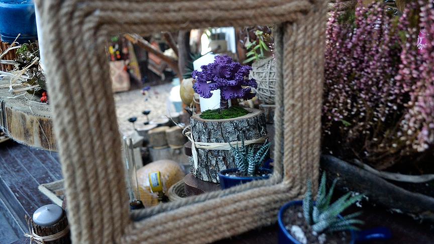 Karabük'te yayımlanan bir gazetenin yazı işleri müdürü Semiha Karaoğlu, doğadan topladığı malzemelerle hobi amaçlı başladığı el dekorasyon ürünlerini tarihi Safranbolu'da açtığı iş yerinde satıyor.