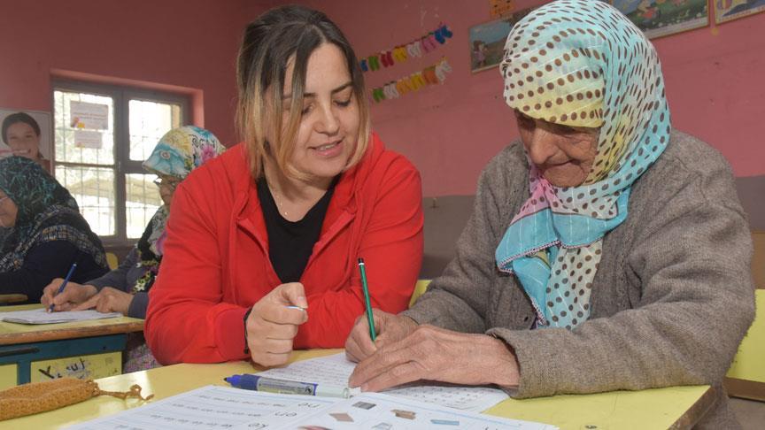 Kurs öğretmeni Gülenay Karababa ise mahalle nüfusunun az olmasından dolayı şu anda Duran Sarı'yla birlikte 4 kadının kursa geldiğini belirterek, "Duran teyzemizin kursun uzak olmasına rağmen büyük bir heyecanla çıkıp buralara kadar gelmesi bizleri gururlandırıyor. İnşallah kurs sonunda hepsine belgelerini takdim edeceğiz." dedi.