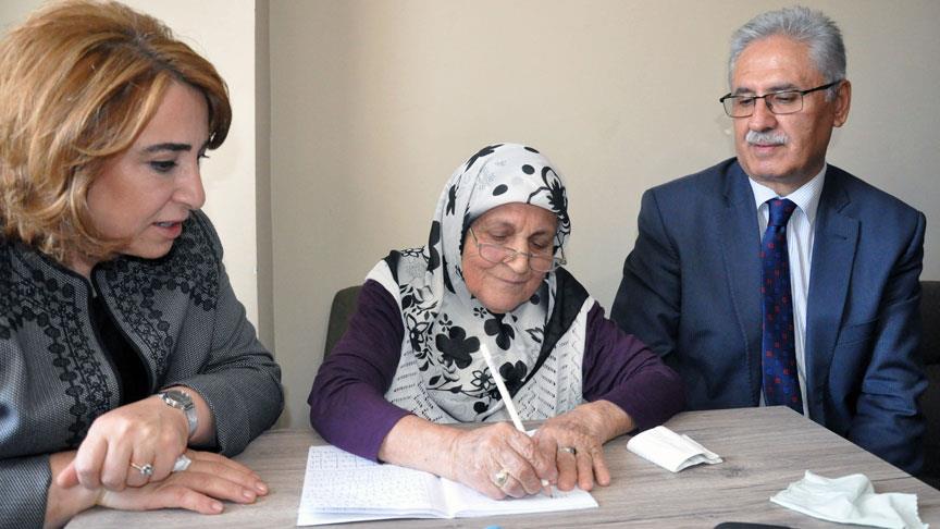 Ereğli'de yaşayan 92 yaşındaki Emine Yavuz, okuma yazma öğrenme hayalini Cumhurbaşkanı Recep Tayyip Erdoğan ve eşi Emine Erdoğan'ın başlattığı okuma yazma seferberliği kapsamında açılan kursa katılarak gerçekleştirdi.