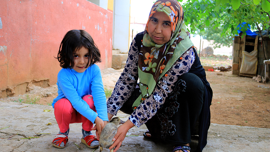 Hatay'ın Hassa ilçesine bağlı Küreci Mahallesi'nde yaşayan 41 yaşındaki Hatice Güler, kız kardeşinden aldığı ördek yumurtalarına, kendi tavuğunu kuluçkaya yatırmasının ardından 6 yavru ördek yumurtadan çıktı.