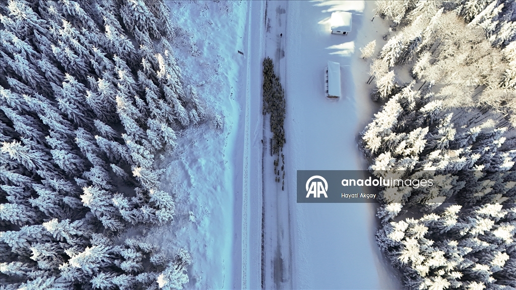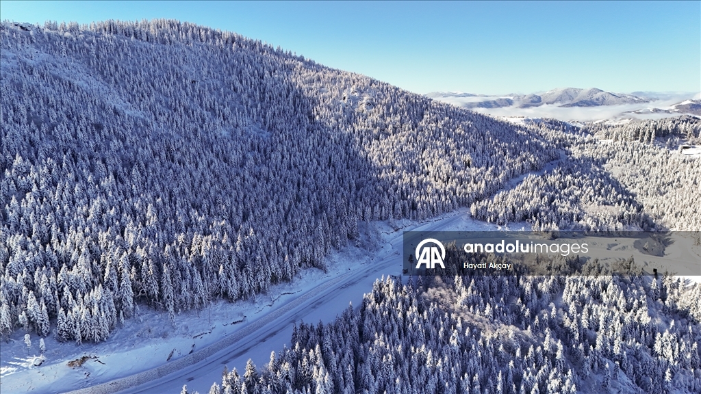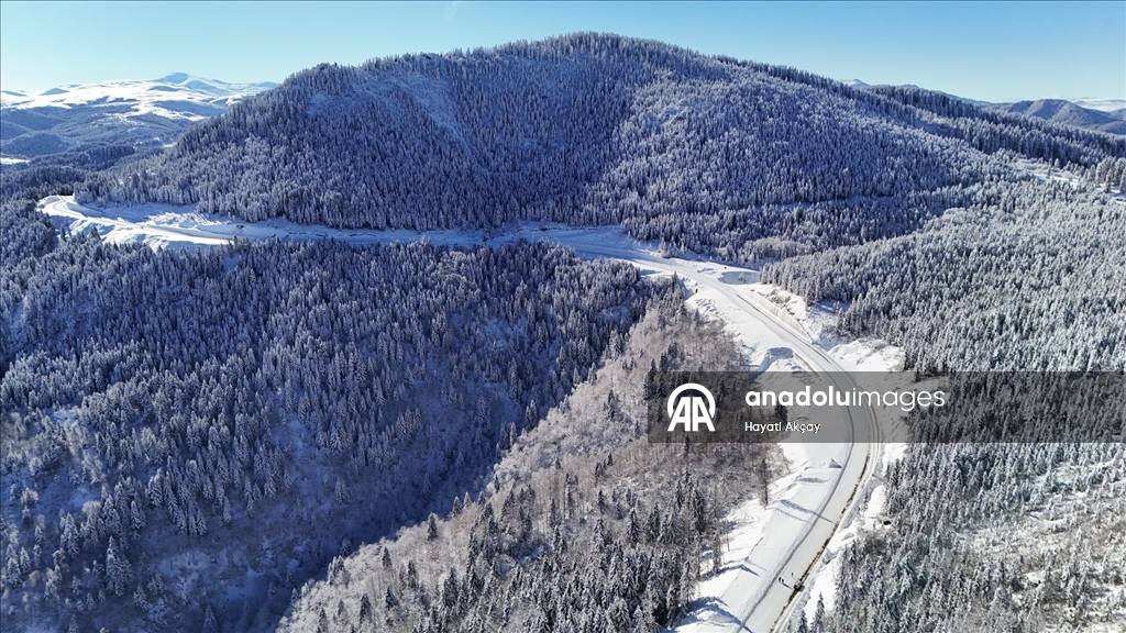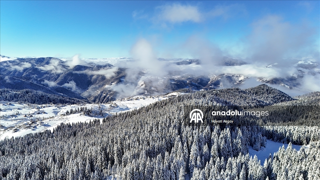 Ordu'nun Çambaşı Yaylası'nda kış manzarası havadan görüntülendi Fotoğraf: Hayati Akçay/AA
