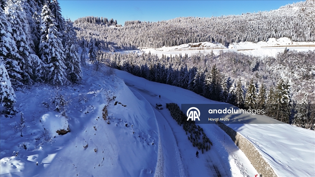 Ordu'nun Çambaşı Yaylası'nda kış manzarası havadan görüntülendi