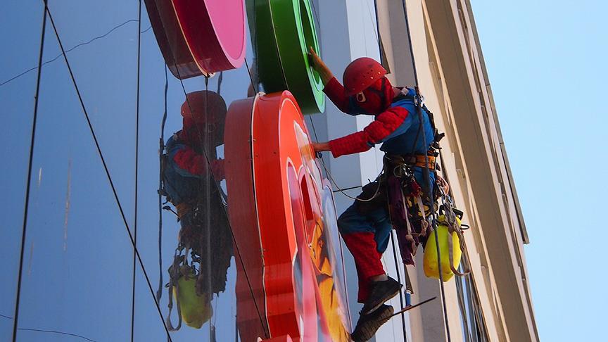 Eskişehirli bir dağcı, çizgi karakter olan ve beyaz perdeye de uyarlanan kurgusal kahraman "Örümcek Adam" kostümüyle 3 yıldır profesyonel olarak dış cephede cam temizliği yapıyor.