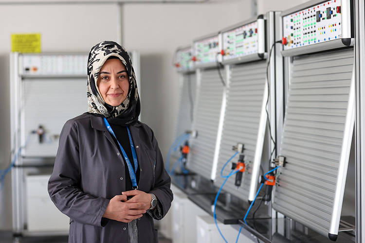 Elektrik-elektronik, endüstriyel otomasyon ile makine tasarım bölümlerindeki 5 kadın öğretmen ise torna makinesinin başına geçip öğrencilerine metale şekil vermeyi, çekiç kullanmayı, elektrik hattı çekmeyi öğretiyor.