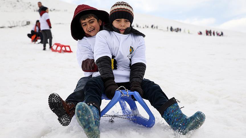 Merkezde kayak eğitimi verilen, kızaklarla kayan ve kar topu oynayan çocuklar, arkadaşları ve aileleriyle güzel gün geçirdi.