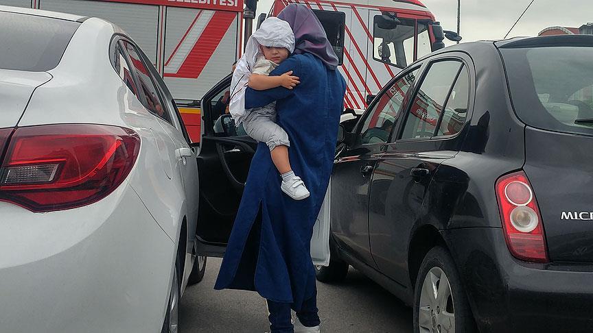 Kısa sürede olay yerine gelen itfaiye ekipleri, otomobilin sürücü kapısının camını kırarak çocuğu araçtan çıkardı.