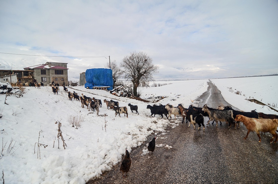 Hayvanlarına daha iyi bakabilmek için tüm zorluklara göğüs geren besiciler de keçi sürülerini karla kaplı meşe ormanlarında otlatmaya çalışıyor.