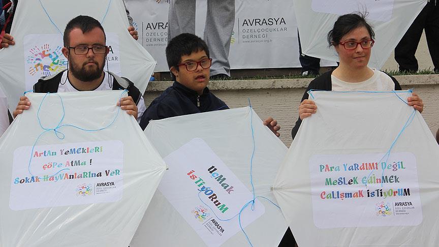 Down sendromlu ve otizmli çocuklar, dileklerini yazdıkları uçurtmaları gözyüzüne bıraktı.