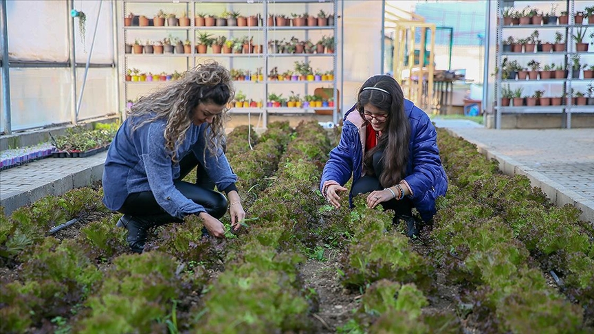 İzmir'in Konak ilçesindeki Hamdi Dalan Özel Eğitim Uygulama Okulunda kurulan serada özel öğrenciler, çiçek ve sebze yetiştiriyor.