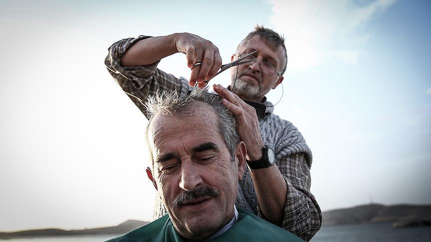 Marmara Denizi'ndeki takımadalar arasında yer alan, Balıkesir'in Erdek ilçesine bağlı Paşalimanı Adası'nın sakinleri, tıraşlarını seyyar olarak hizmet veren, adanın tek berberi Hüseyin Yavuz'a yaptırıyor.