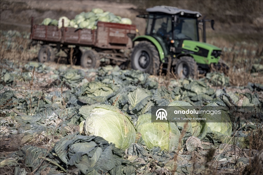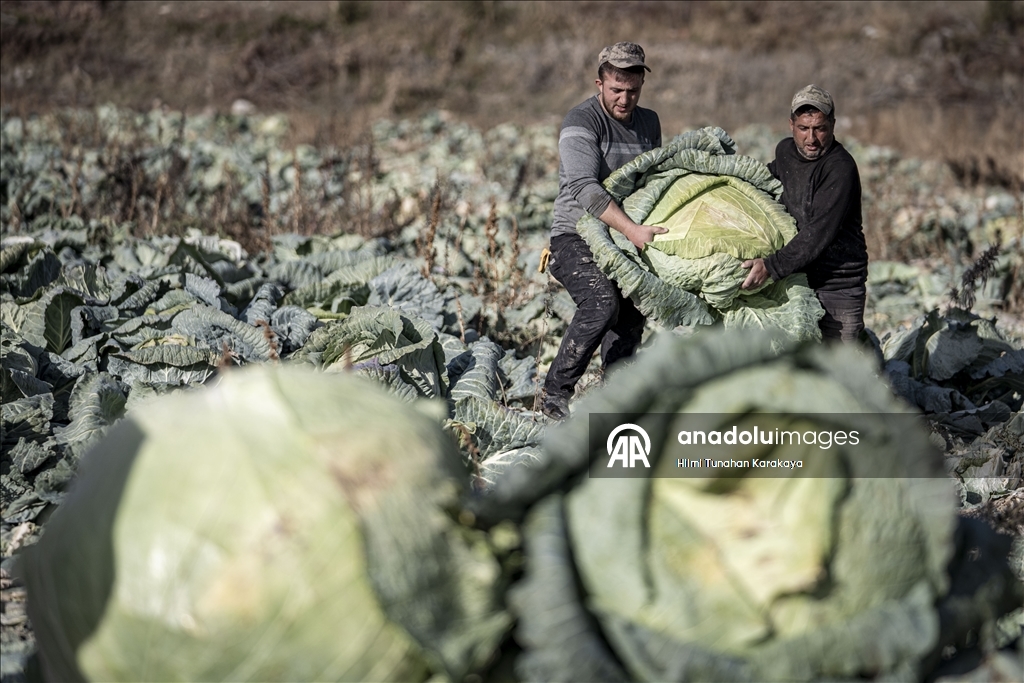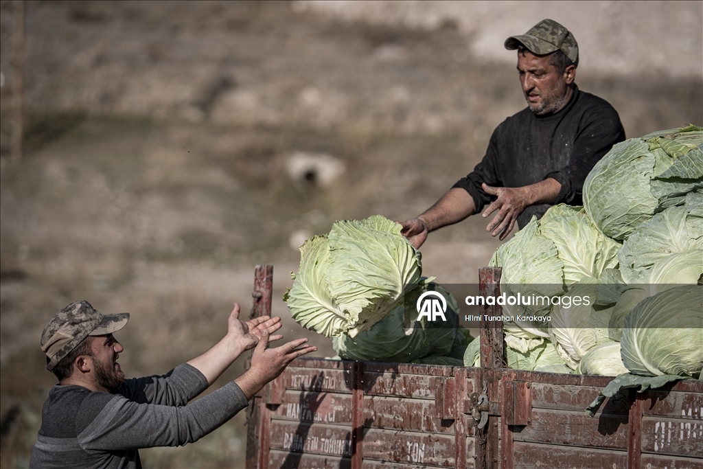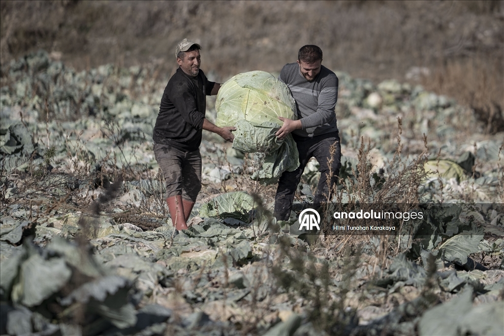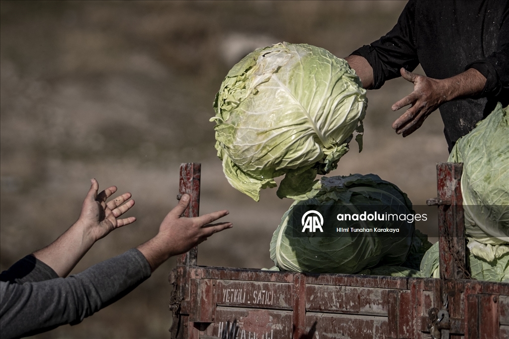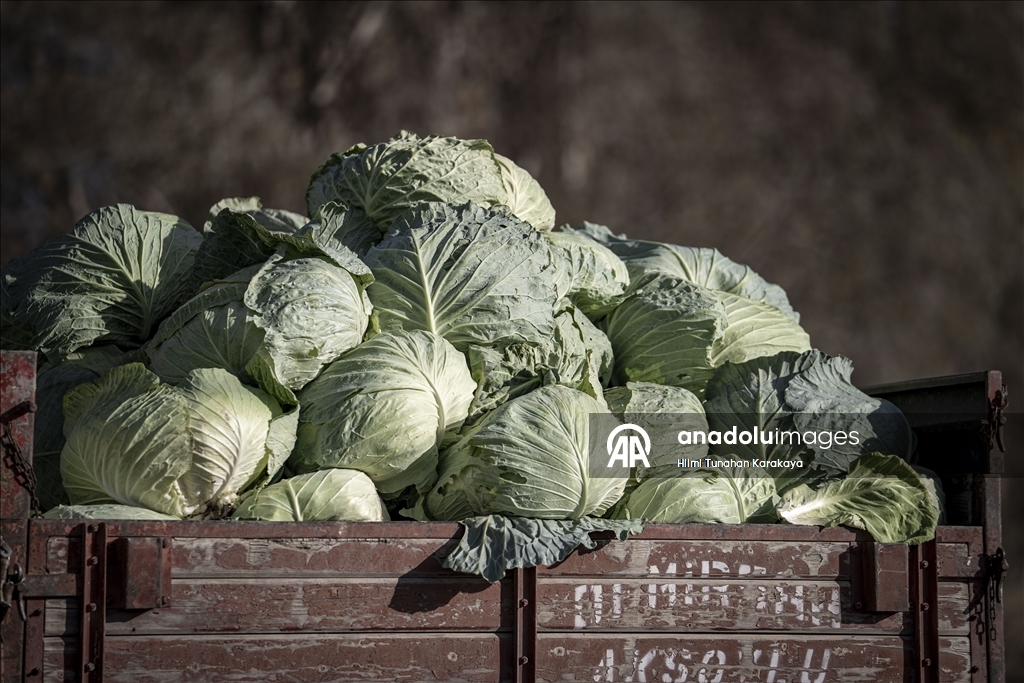 Dönüm başına ortalama 700 lahananın hasat edildiği ovada, 350 bine yakın mahsul, Karadeniz ve Doğu Anadolu Bölgesi'ndeki illere gönderilmeye başlandı.
