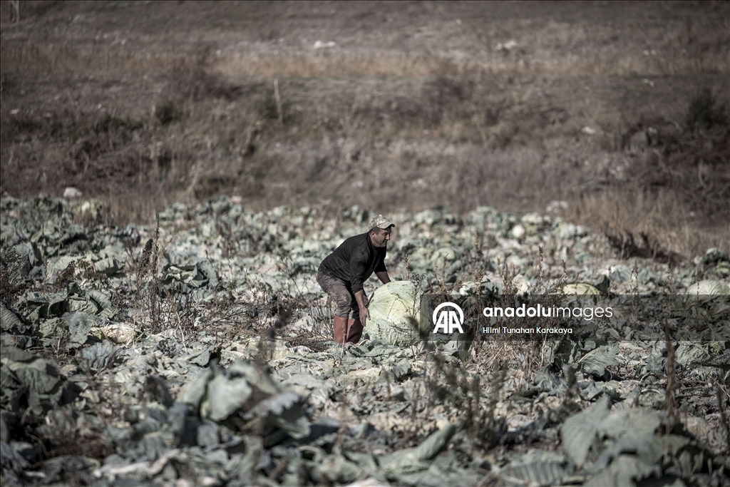 Ata tohumla lahanalarını üreten çiftçiler, bazı tarlalarda 15-25 kilogram arasında olması beklenen lahanaların 50 kilogramı aşmasının da mutluluğunu yaşıyor.