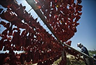 Bahçelerden toplanan biberler, genellikle evlerin damlarında ve yanlarındaki boş alanlarda, okul bahçelerinde ve cami önlerinde kurutuluyor.