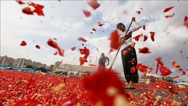 Kayseri'nin Cırgalan Mahallesi'nde yıllardır geleneksel usullerle üretilen, pastırma ve sucuğun olmazsa olmazı "Cırgalan biberi", genellikle evlerin damlarında kurutulup toz ve pul biber haline getirildikten sonra sofralardaki yerini alıyor. Kocasinan Belediye Başkanı Ahmet Çolakbayrakdar (sağda) konuyla ilgili AA muhabirine açıklamalarda bulundu. ( Esma Küçükşahin - Anadolu Ajansı )