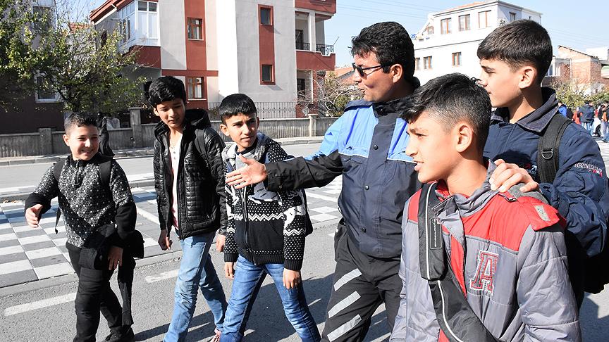 Suriyeli çocukların gördükleri her yerde "Polis Mesut ağabey" diye seslenip yanına koştuğu Eroğlu, onlarla futbol ve basketbol oynayıp zaman geçiriyor.