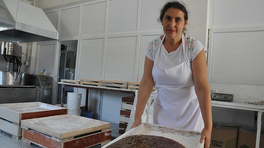 Hatay'ın Dörtyol ilçesinde, ilanını reklam panosunda gördüğü girişimcilik kursuna katılarak sertifika alan kadın, lokum imalathanesi açarak işinin patronu oldu.