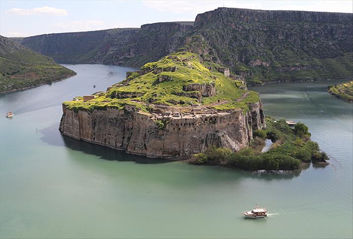 Doğal güzelliği görmek üzere bölgeye gelen yerli ve yabancı turistler, bir taraftan Rumkale'nin tarihi kalıntılarına bakarken bir taraftan da Fırat Nehri'nin mavi sularında tur atan tekneleri izleyebiliyor.