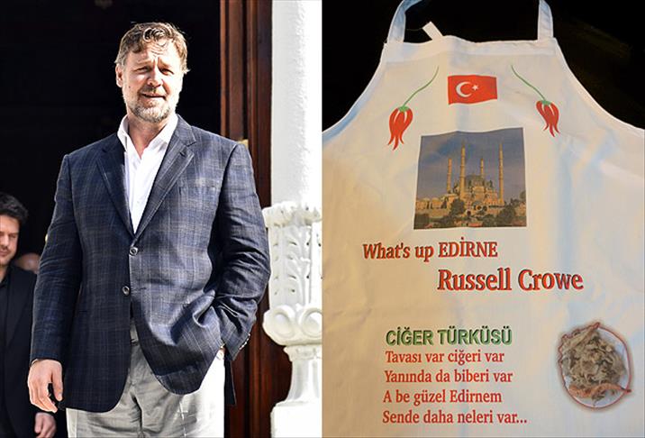 "Ünlü aktör Edirne'de filmi için mekan bakmaya geldiğinde Twitter'dan 'What's up Edirne?' yazdı ve milyonlarca takipçisi 'Edirne de ne?' diye merak etti, gözler Edirne'ye çevrildi. Bu ziyaretinde biz de ona Edirne'nin meşhur tadı tava ciğerini tattırdık, ciğerin de büyük reklamı oldu. Edirne'nin Crowe'a, vefa borcu olduğunu düşünerek, ciğerci önlüğü diktirdik.