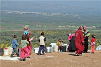 Ülkelerindeki olaylar nedeniyle güvenli buldukları Türkiye sınırına yakın Atme kasabası yakınlarında kendi imkanlarıyla kurdukları derme çatma çadırlarda kalan çoğunluğu kadın ve çocuklardan oluşan Suriyeliler, zorlu bir yaşam mücadelesi veriyor.