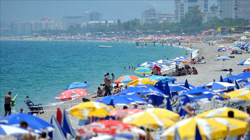 Hava sıcaklığının 27 derece olarak ölçüldüğü ancak nem oranının yüzde 60 olması nedeniyle bunaltıcı bir sıcaklığın hissedildiği Antalya'da, sıcaktan bunalan vatandaşlar sahillere akın etti.