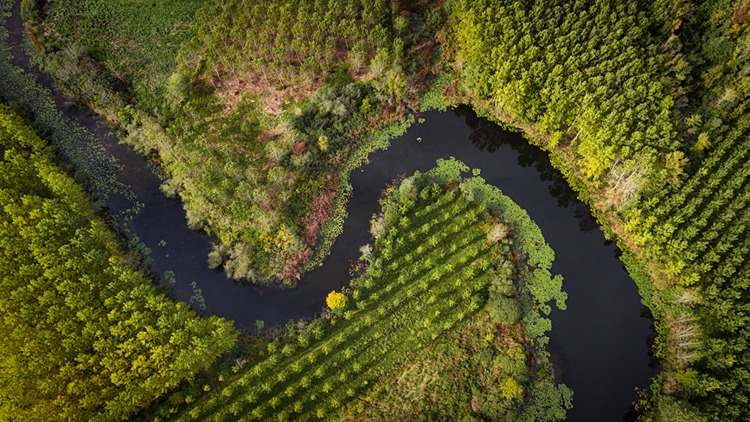 Düzce'de doğup Sakarya üzerinden Karadeniz'e dökülen Büyük Melen Çayı'nın havzasında da sonbaharın renkleri ahenkli görüntüler oluşturuyor.
