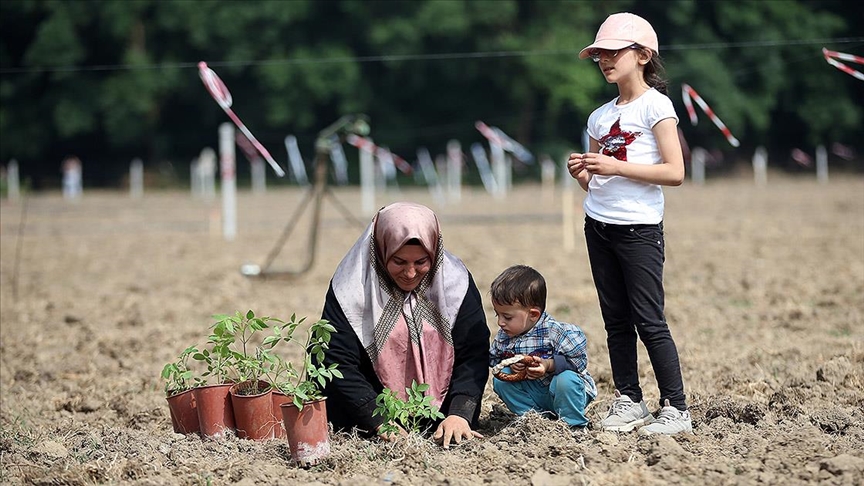 Projenin Sanayi ve Teknoloji Bakanlığınca da desteklendiğini ve ilçedeki kadınlar tarafından ilgi gördüğünü belirten Soykan, "Burada 30 dönümü 30 kadınımıza kurayla dağıttık. Her bir parsele 55'er fide verdik. Herkes kurada çıkan kendi arazisine bu fidanları ekiyor." dedi.