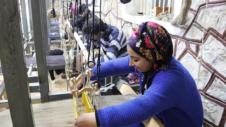 Atölyede görevli usta Leyla Çekin de kök boyayla renklendirilen tiftiğin bazı aşamalardan geçtiğini ve ardından tezgahta dokunarak kumaş haline getirildiğini bildirdi.