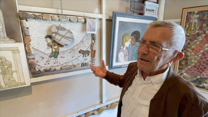 Yurtsever, çalışmalarını sürdürdüğü evindeki sanat atölyesinde AA muhabirine, eserlerinde toplu iğnenin yanı sıra son zamanlarda tüy kullanmaya başladığını söyledi.