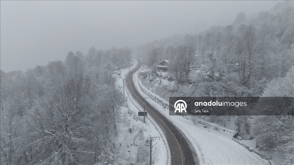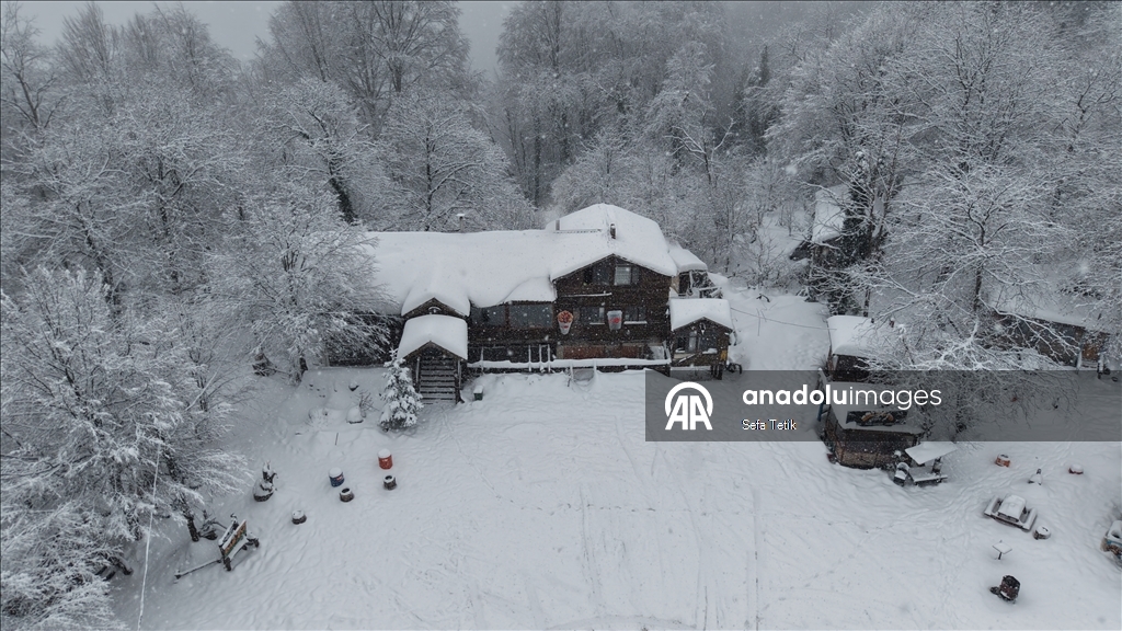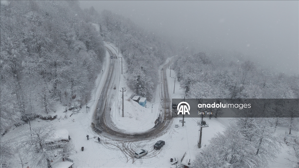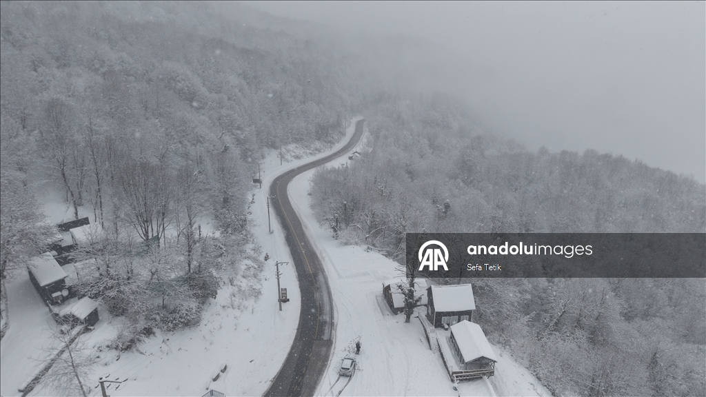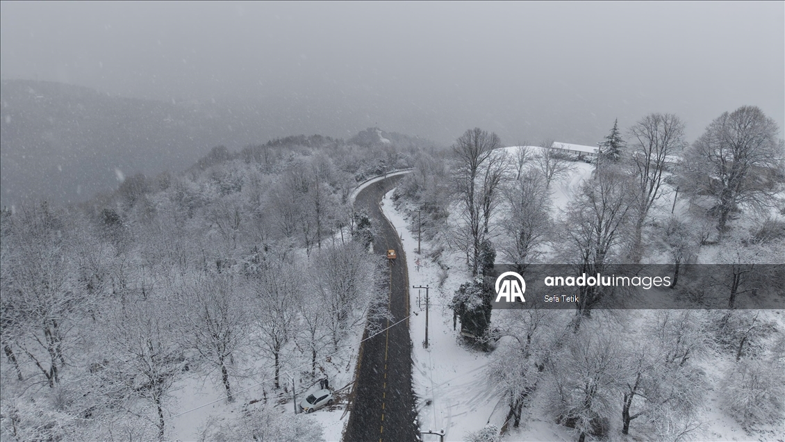 Kocaeli'de Samanlı Dağları’nın yamaçlarında etkili olan kar yağışının oluşturduğu kış manzaraları dronla kayda alındı.