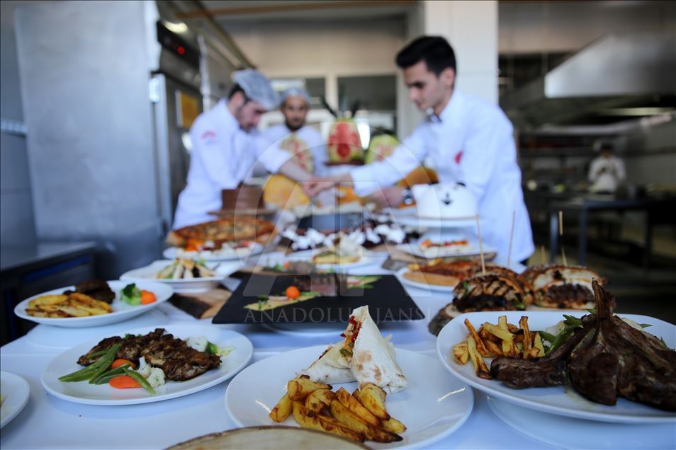Nevşehir Hacı Bektaş Veli Üniversitesi (NEVÜ) Turizm Fakültesi Gastronomi ve Mutfak Sanatları Bölümü öğrencileri, yemek yarışmalarında madalya kazanan akademisyenlerden eğitim alarak başarıya koşuyor. Yaklaşık 10 yıldır, konaklama ve yiyecek-içecek işletmeleri için nitelikli yönetici şefler yetiştiren bölümün öğretim kadrosu, bugüne kadar çeşitli ulusal ve uluslararası yarışmalarda 46 madalya, öğrencileri ise 17 madalya ve 2 kupa kazandı. Fakülte yerleşkesindeki mutfakta çeşitli kültürlere ait yemek yapımı, süsleme ve hazırlama sanatı başta olmak üzere çeşitli pratik eğitimler alan öğrenciler, gelecekte başarılı birer aşçı olabilmek için gayret gösteriyor. ( Behçet Alkan - Anadolu Ajansı )