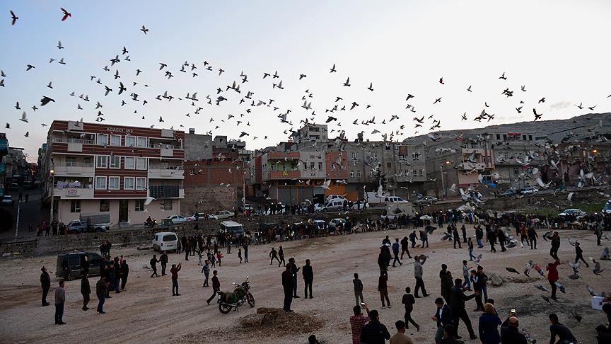 Şanlıurfa Hayvanları Koruma, Yaşatma Derneğince organize edilen etkinlikte Devteş, Süleymaniye ve Sigorta mahallelerinde güvercin besleyen yüzlerce kişi, merkez Eyyübiye ilçesinin Osmanlı Mahallesi'ndeki boş alanda bir araya geldi.
