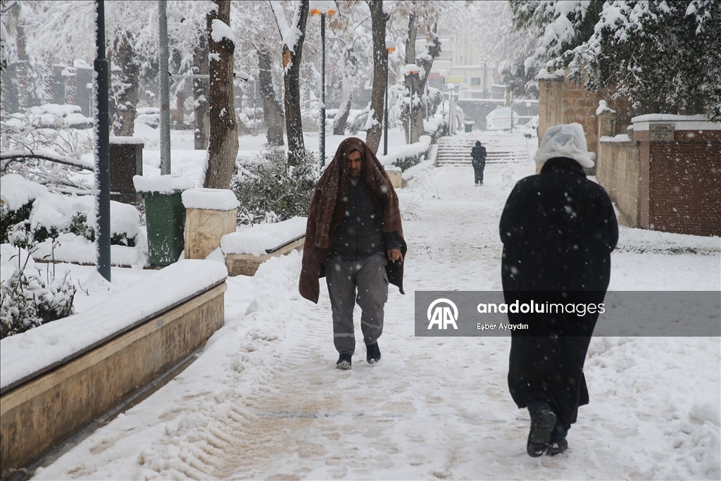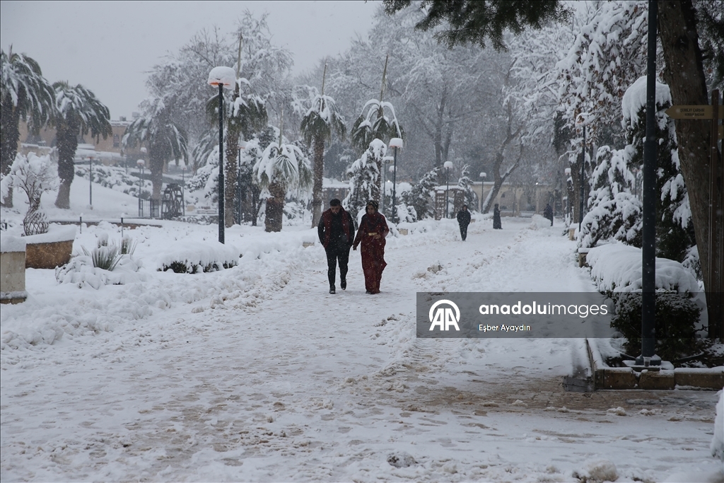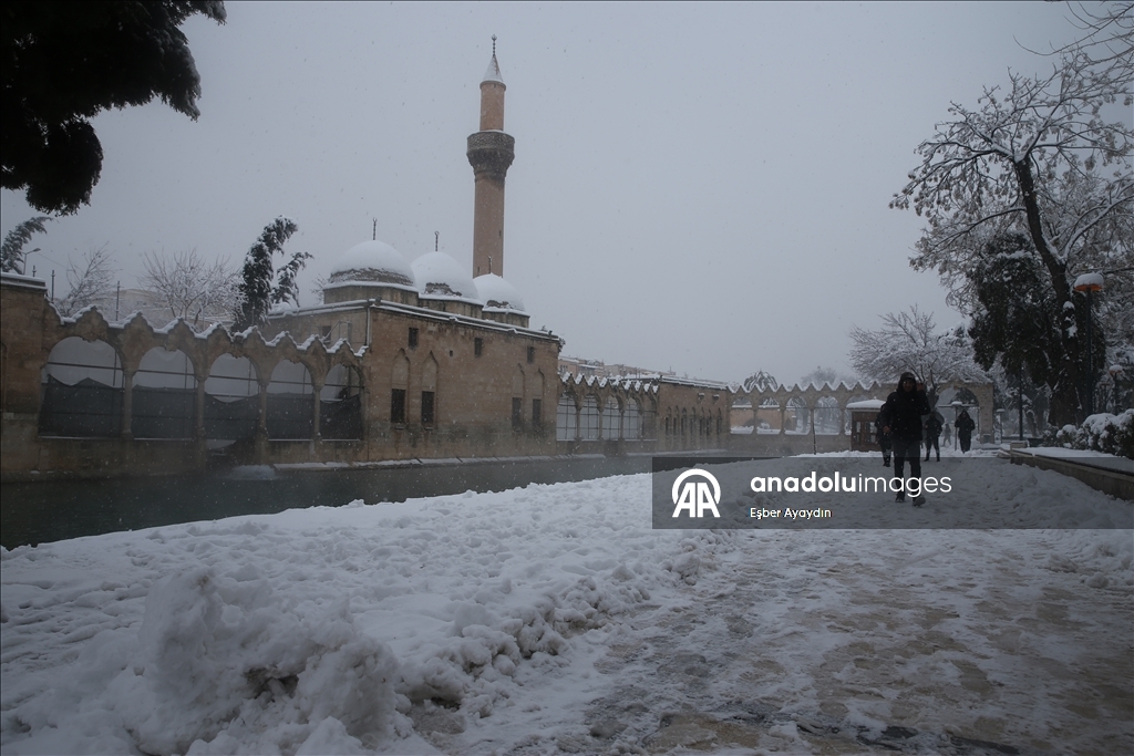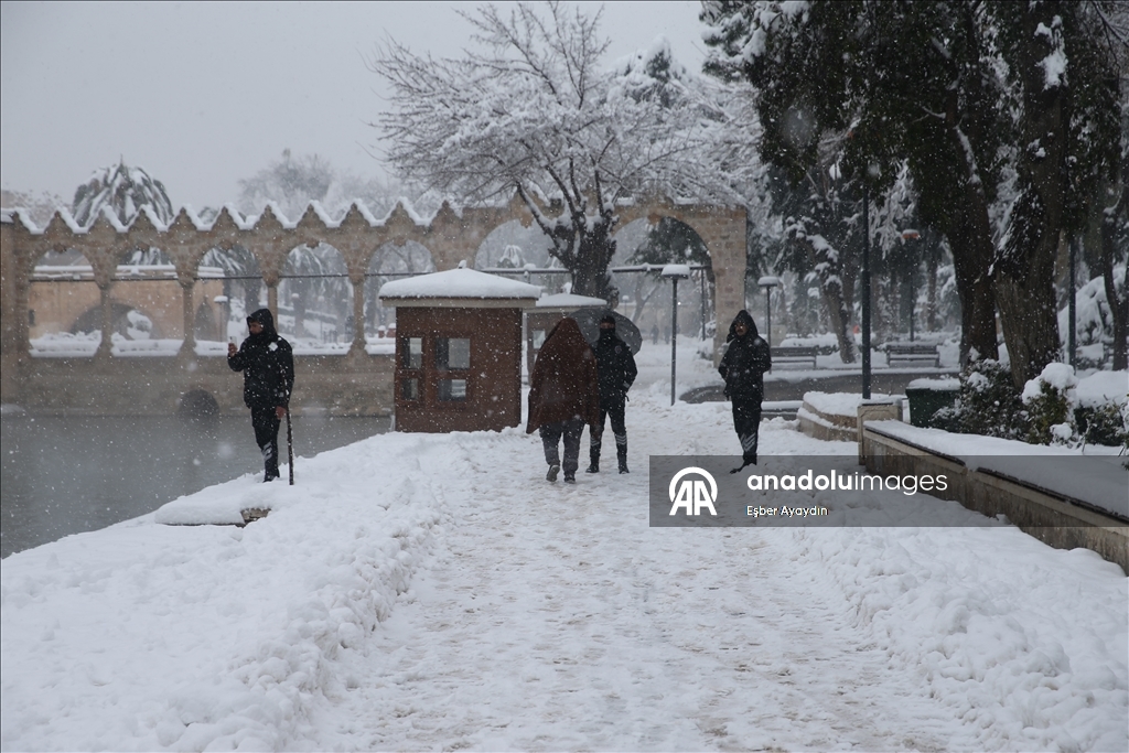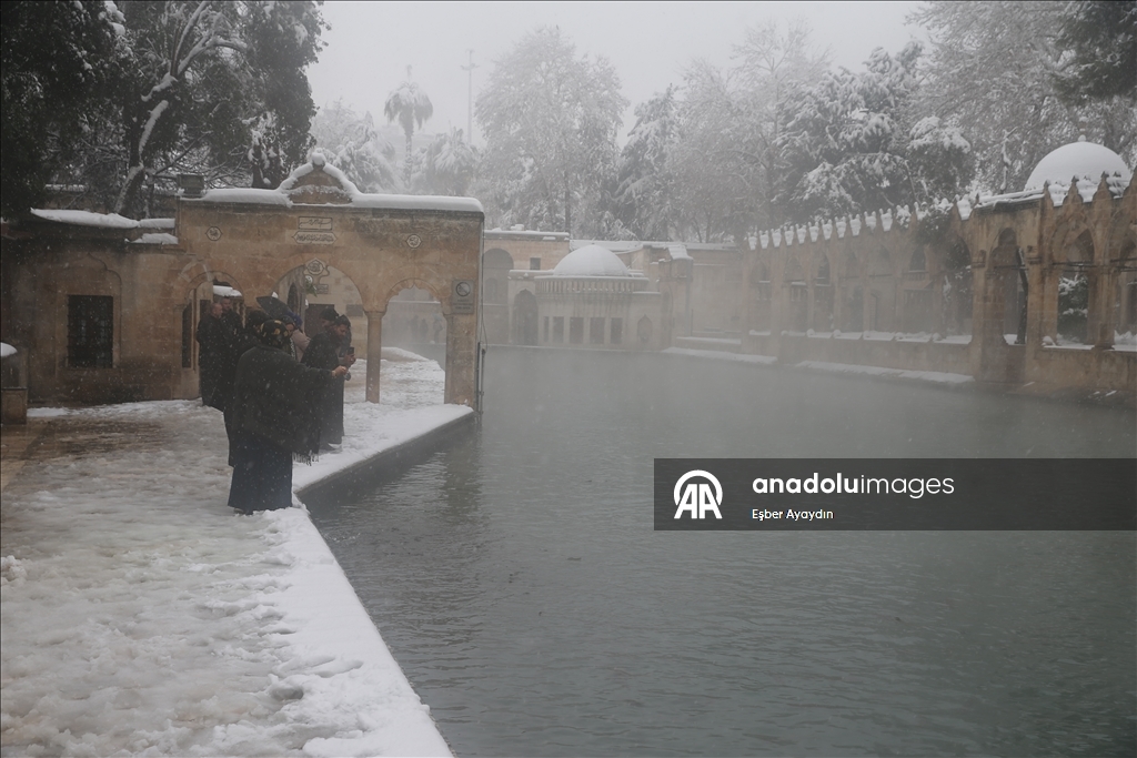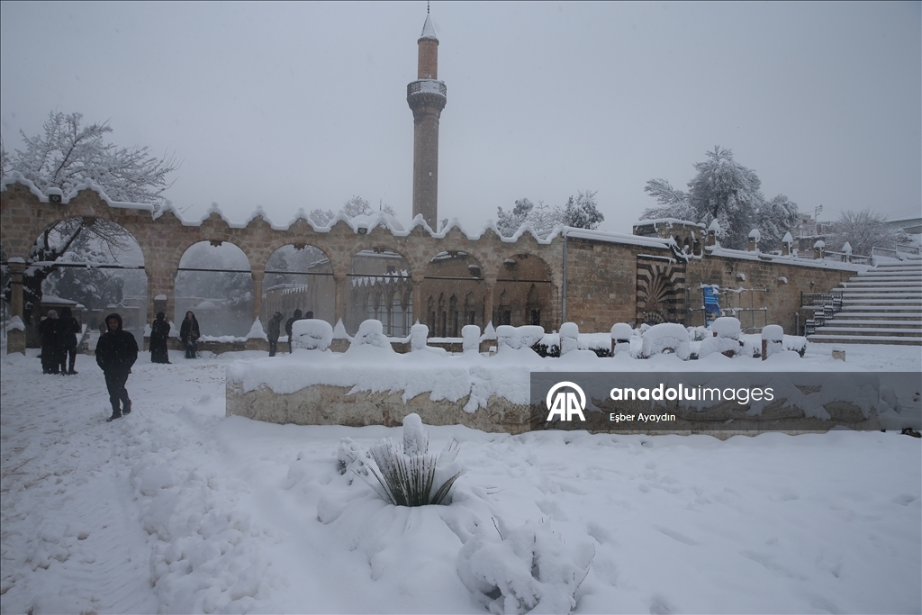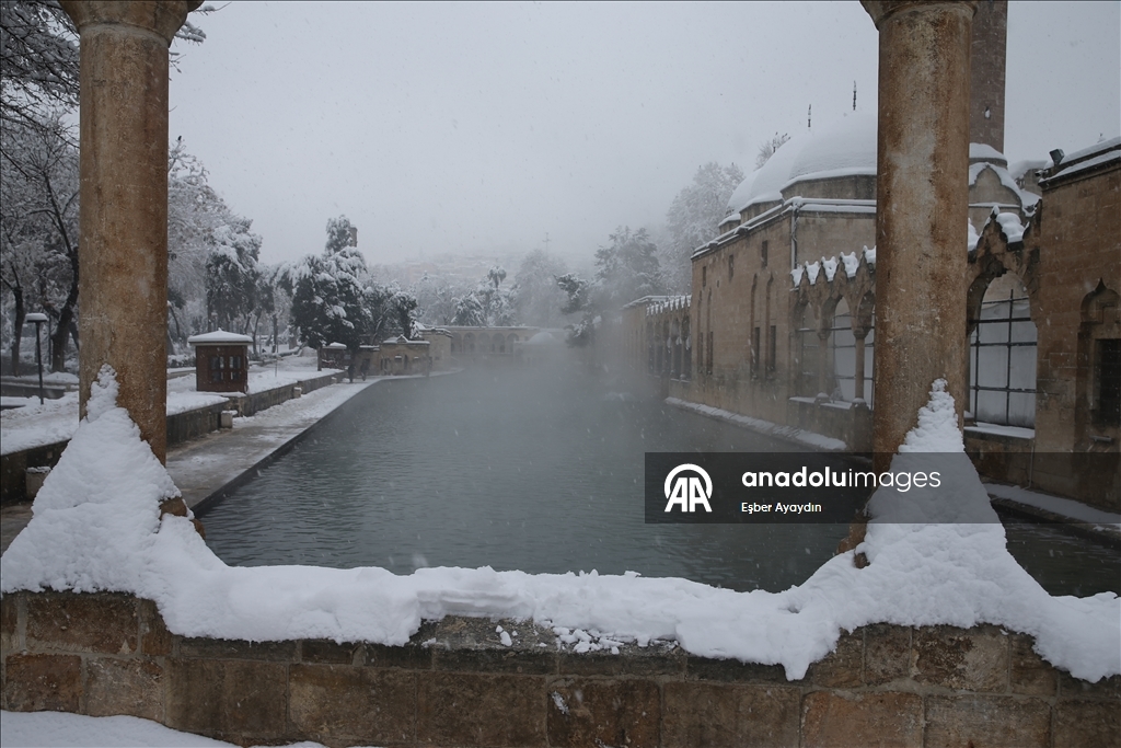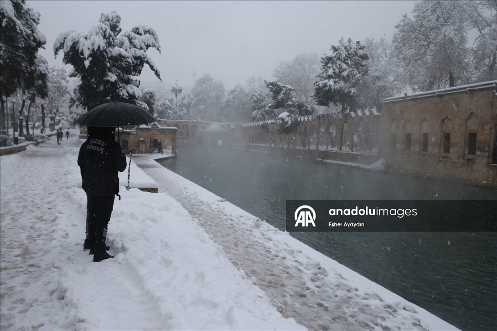 Kentte dün başlayan kar yağışı, tarihi Balıklıgöl ve Şanlıurfa Kalesi'ni de beyaza bürüdü.
