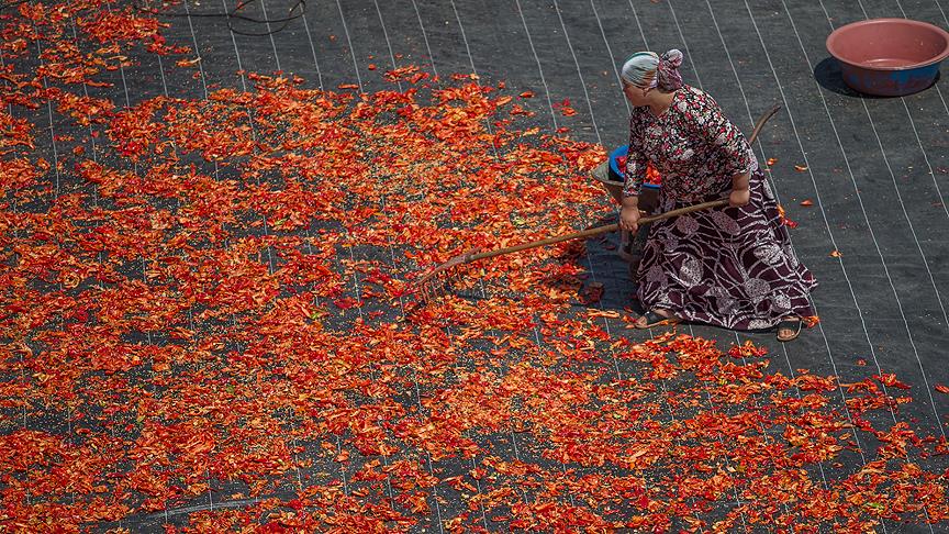 Nisanda ekimi yapılan ve ağustosta hasat edilmeye başlanan biber, Haliliye ilçesi Sırrın Mahallesi'nde oluşturulan alanda kadınların hummalı çalışmasının ardından isot haline getirilerek sofralardaki yerini alıyor.